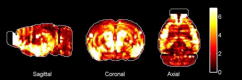 Toggling the 'absolute' button will allow you to see the raw localization scores for each region. Hovering over a bar will reveal the precise localization value - the calculated result of the relative function when the relative button is active, or the raw localization score when the absolute button is active. Additionally, hovering over a specific bar will reveal the relevant brain region on the maps below. Please note that the color of the bars and brain regions are also significant, since they are interpolated on a color scale in accordance to the localization scores.