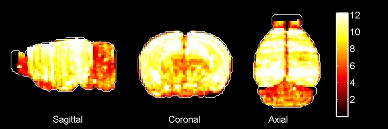 The histograms presented below show the localization scores for this gene for each parcellation: coarse, cortex, & fine. The default setting is relative, which shows the localization score for the gene normalized by the Volume Fraction of the Compartment.