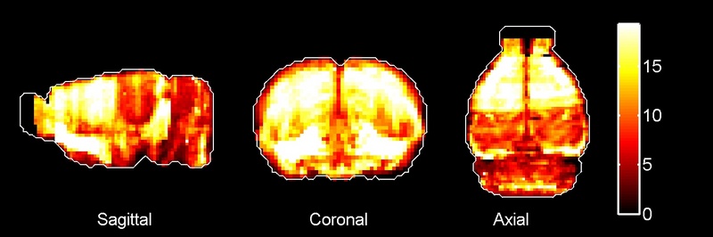 Toggling the 'absolute' button will allow you to see the raw localization scores for each region. Hovering over a bar will reveal the precise localization value - the calculated result of the relative function when the relative button is active, or the raw localization score when the absolute button is active. Additionally, hovering over a specific bar will reveal the relevant brain region on the maps below. Please note that the color of the bars and brain regions are also significant, since they are interpolated on a color scale in accordance to the localization scores.