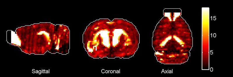 Toggling the 'absolute' button will allow you to see the raw localization scores for each region. Hovering over a bar will reveal the precise localization value - the calculated result of the relative function when the relative button is active, or the raw localization score when the absolute button is active. Additionally, hovering over a specific bar will reveal the relevant brain region on the maps below. Please note that the color of the bars and brain regions are also significant, since they are interpolated on a color scale in accordance to the localization scores.