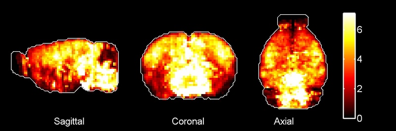 Toggling the 'absolute' button will allow you to see the raw localization scores for each region. Hovering over a bar will reveal the precise localization value - the calculated result of the relative function when the relative button is active, or the raw localization score when the absolute button is active. Additionally, hovering over a specific bar will reveal the relevant brain region on the maps below. Please note that the color of the bars and brain regions are also significant, since they are interpolated on a color scale in accordance to the localization scores.